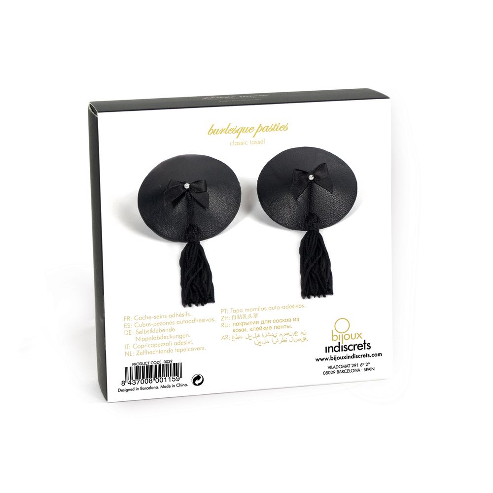 Leather nipple covers with adhesive tapes.Become an exuberant character with Bijoux Indiscrets’ Burlesque Pasties. A delicate homage to the 19th-century stage, full of glamour and sensuality.