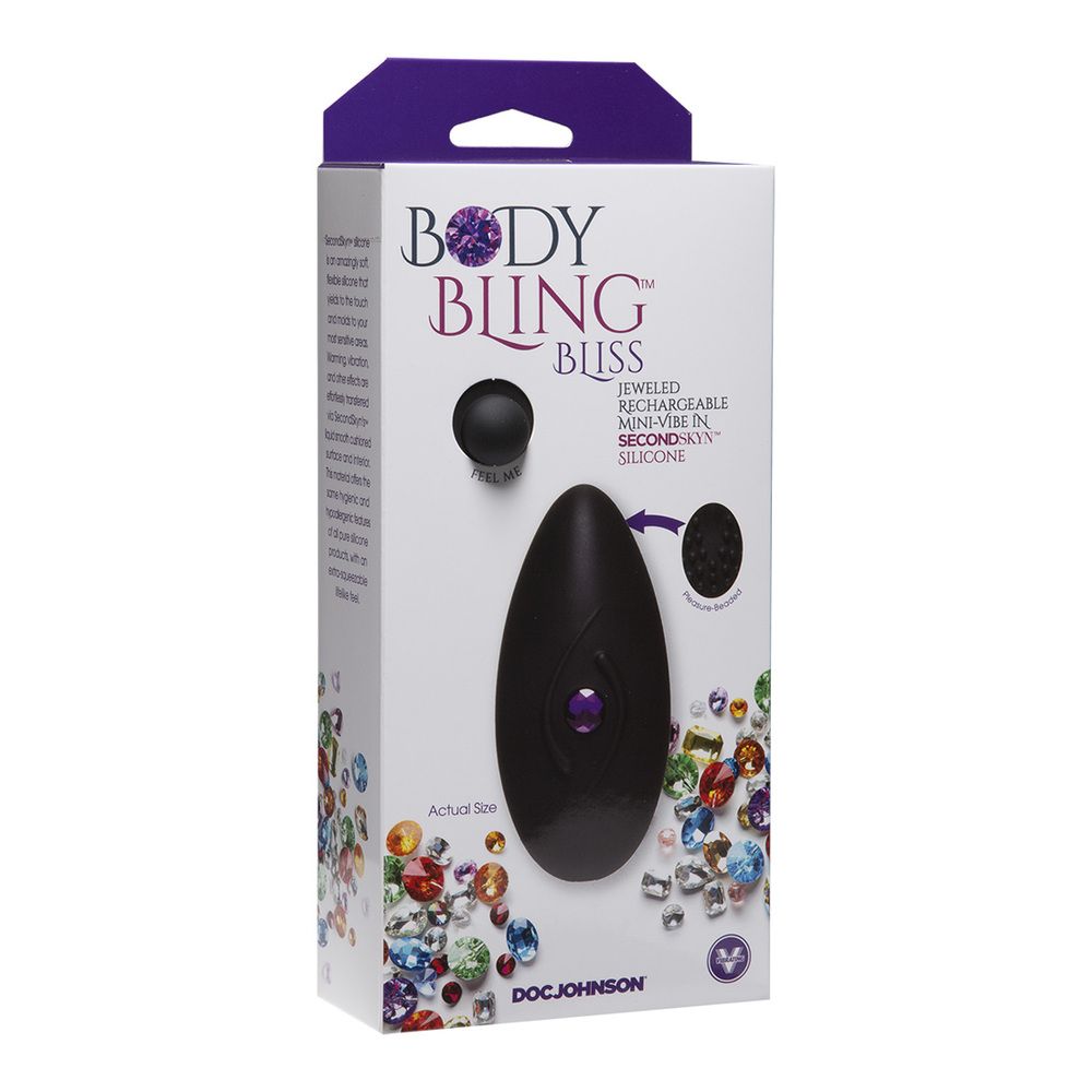Add some bling to your bedroom with the Body Bling Bliss in SECONDSKYN, an amazingly soft, flexible silicone that warms to the touch and moulds to your most sensitive areas. This jewelled mini vibrator is small but powerful, with a quiet motor and 8 unique functions. Enjoy the smooth surface on top, or flip it over to experience the stronger stimulation of the lightly textured underside. Bliss is easy to operate too, just a press of its sparkling gem powers vibrations on and off, and selects your favourite mode. Bliss is completely wireless and conveniently rechargeable via the included USB cable.Luxurious SECONDSKYN Soft SiliconeSparkling Jewel Makes Playtime Fun8 Powerful Vibration ModesPleasure-Beaded Underside for Added StimulationPerfect Shape to Wear in PantiesDiscreet Size, Quiet MotorWater-ResistantUSB Rechargeable cable included