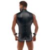 Sleeveless jumpsuit with 2 wrist cuffs in a set from Svenjoyment BONDAGE. The elegant black matte look fits close to the skin. With mesh inserts on the short pants legs for an exciting view. The front features a zip going from the stand-up collar down to the waistband. The pouch has an underlaid zip. Each side of the waistband features a ring for attaching the included wristcuffs. Their adjustable hook-and-loop fasteners makes these soft restraints quick to use for pleasurable bondage games. The back features 6 additional rings for more bondage options.Short, sleeveless jumpsuitIncludes 2 soft wrist cuffsElegant matte look with mesh insertsZip from the neck to the waistbandUnderlaid zip at the pouchRings at the waistband for restraints6 additional rings at the lower backSoft and stretchy for high comfortRestraints with hook-and-loop fastenersWith clever elements for bondage games!90% polyester, 10% spandex.