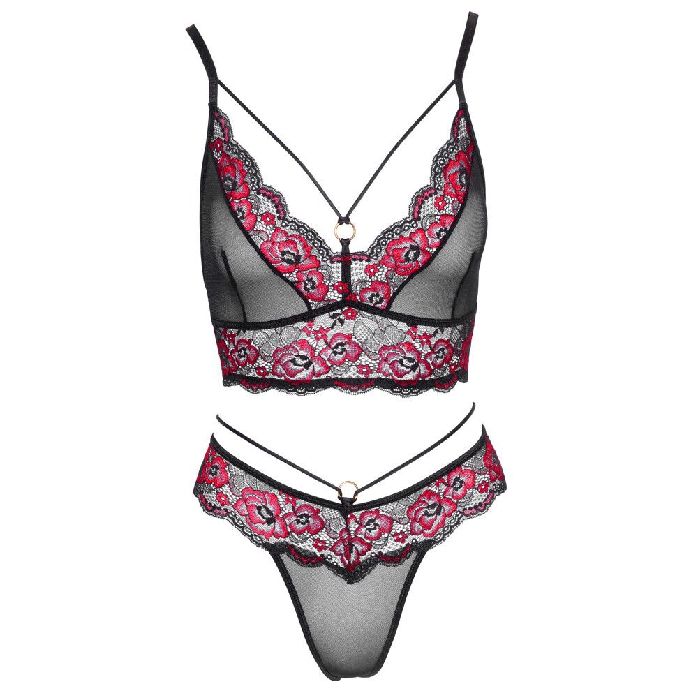 This elegant set from von Cottelli Lingerie stands out because of its beautiful lace and decorative straps that go over the breasts and cling to the waist. The wireless bra is extremely comfortable to wear thanks to the spandex. Perfect for hot nights but it can also be worn during the day as well.