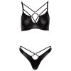 A bra with underwired cups and a Rio string in a set from Cottelli LINGERIE. Beautiful black matte look material with decorative stretchy straps and silver-coloured rings in the cleavage area and at the front of the string’s waistband. It is stretchy, which means that it is a perfect fit and also feels comfortable to wear. The bra has adjustable straps and a hook fastener at the back.Bra with underwired cups and Rio string in a setBeautiful matte look material stretchyDecorative stretchy straps with ringsA trendy set for every day and amorous adventures!90% polyester, 10% spandex.
