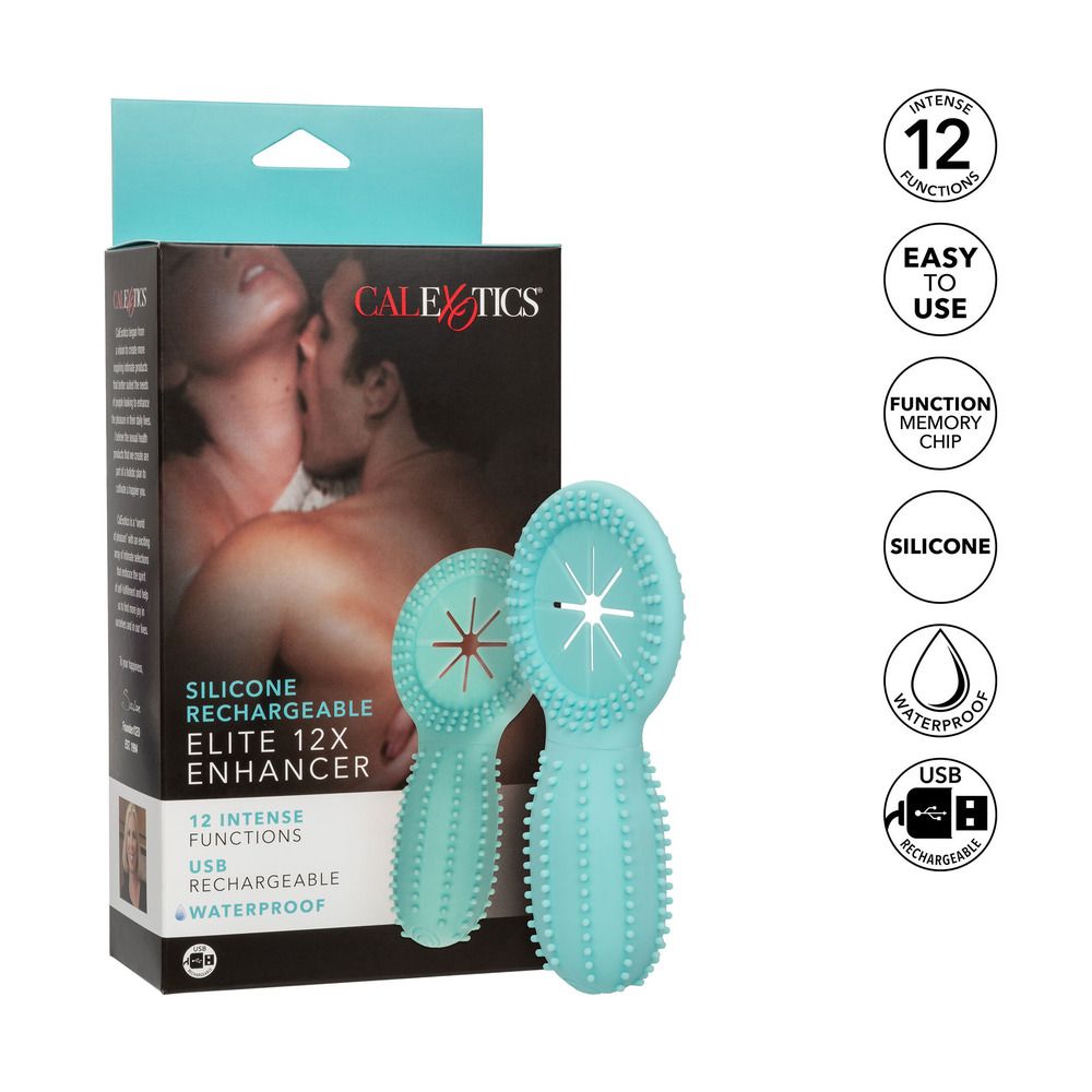 The Silicone Rechargeable Elite 12X Enhancer uses the perfect mix of 12 functions of vibration with a daring teaser to deliver double the knee-shaking pleasure.The stretchy support ring is made to intensify pleasure for both beginners and erotic experts alike. The plush body-safe silicone ring works to improve stamina and girth to make your lover moan for more, more, more.The unique support ring maximizes sensitivity and elevates sensation throughout the penis, letting you enjoy longer more powerful pleasure. Reach next-level pleasure with 12 functions of vibration and a rumbling teaser made to leave your partner in a state of orgasmic bliss. The ergonomically shaped stimulator and nubbed teaser reach all of your most sensitive sweet spots.Take this waterproof ring for a dip and embrace those powerful vibrations in the bath or shower. This passionate cock ring remembers exactly how you like it with the state-of-the-art memory chip and can pick up on the last function used. Use the sleek button to effortlessly control pleasure.Indulge in up to 80 minutes of low-speed vibrations or 45 minutes of high-speed stimulation with every charge. To recharge your passions, plug the provided USB charging cable into the self-sealing charging port and allow 1.5 hours to fully recharge.