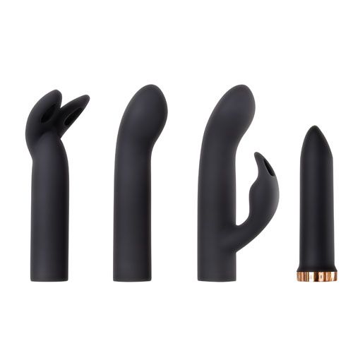 Discover four unique experiences with one versatile toy! Evolved’s workhorse durable 7-speed bullet forms the powerful foundation for your choice of G-spot exploration, dual orgasms and bunny ear clitoral pleasure not to mention classic bullet play all on its own. There are no wrong decisions, only deep satisfaction from the bullet and three different silicone shapes that slip onto it with ease, even underwater since every combination of Four Play is completely water submersible! Clean with toy cleaner and a warm water rinse.Powerful bullet with four unique silicone sleevesPerfect for clitoral and G-spot orgasms3 interchangeable sleeves G-Spot, Dual Stim G-Spot, Bunny earsFlat end tip bullet provides the fourth experienceBullet made from durable ABS plastic with stylish copper finishSleeves made from creamy smooth silicone7 Powerful vibrating functionsBlue LED light illuminates buttons when in useWaterproof and submersiblePhthalate and latex-freeUSB magnetic rechargeable, cable includedDual G-Spot Sleeve. 1.05×4.9×2.12 InchesG-spot Sleeve 1.09×4.9×1.18 InchesBunny Ears 1.38×4.76×94 InchesBullet 0.94×3.85×0.94 Inches