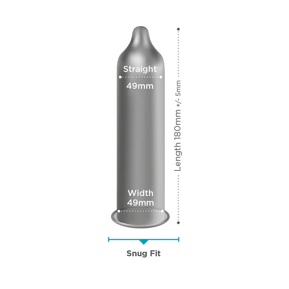 For a tighter, more secure fitting condom choose EXS Snug Fit.They come with a 49mm width and have a straight wall and a teat end.Vegan-approved and Cruelty-Free. EXS are vegan approved. EXS take great pride in being cruelty-free with no animal testing whatsoever. EXS standards have been awarded by the Vegan Society and animal rights organisation, People for the Ethical Treatment of Animals, PETA.Quality TestingEXS factories as well as the British Standards Institute, BSI, both test our Condoms.Our EXS condoms have a number of tests performed on them including, each condom being electronically tested for holes, and samples being burst pressure tested for strength. The quality of the latex we use for our condoms and the vigorous testing we perform means we can be confident that EXS condoms are amongst the best quality condoms in the world.WIDTH 49 mmTHICKNESS 0.062mmLENGTH 176mmSmooth, plain, natural latex, flared, teat ended, and silicone lubricated condom.