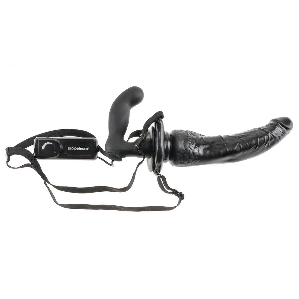 Get hands free stimulation and hot face to face sex with the Vibrating Strap On.Cleverly curved at just the right angle, this double-ended dildo stays inside the wearer with each passionate thrust. The internal plug is perfectly angled to reach your G spot and fill you with pleasure.A powerful multi-speed bullet sends incredible vibrations through the entire shaft choose a speed that’s right for you and let the silent vibrations whisk your lover away.