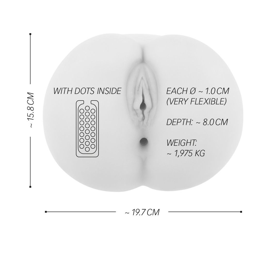 Extremely realistic masturbatorWith a vagina and anus holeWith stimulating dots insideSkin-like materialFor realistic thrusting pleasure!Incredibly realistic masturbator Sofia from Jessy Summer with plump buttocks and a realistically shaped vagina and anus hole. There are stimulating dots on the inside for an effective penis massage.The material looks like real skin and also feels as silky soft as skin. The feelings during penetration are also extremely realistic! The masturbator can be easily cleaned, it just has to be rinsed with water.19.7 cm x 15.8 cm x 10.9 cm.Vagina 8.5 cm deep, anus 8 cm deep, both are tight but flexible.Weight 1975 g.