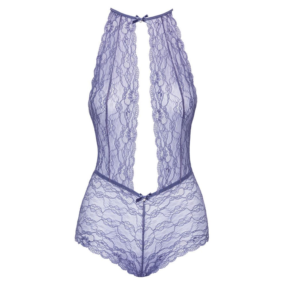 The body from Kissable’s is made entirely out of delicate lace. It has a low-cut front and back. The extremely comfortable body is very soft and stretchy. The collar and the waist strap are decorated with small bows and sparkly gems. The collar has a small hook fastener at the back.Lavender-coloured body in an exclusive styleEntirely made out of delicate laceLow-cut front and backThe collar and waist strap are decorated with sparkly gemsHook fastener at the back of the neckSoft and stretchy for a comfortable fitAn exclusive style in a delicate lavender colour!90% polyamide, 10% spandex.There is a separate size chart for kissable.