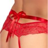 Soft bra, suspender belt and thong set from kissable made entirely of fine red lace with gold-coloured reflections and details. Soft and elastic all around for maximum comfort. Stylish bra with a satin tie at the front and a hook fastener at the neck and back. Garter belt at the back with a satin tie loop, and the suspenders are adjustable to suit. The small lace thong seduces with two narrow stretch straps that come together at the crotch.90% polyamide, 10% elastane.Delivery without stockings.Soft bra, suspender belt and thong in an exclusive setMade entirely of fine red laceGold-coloured reflections and detailsFront and back with satin tie bowAdjustable suspendersSoft and elastic for high wearing comfortExclusive style in gold-reflective red!