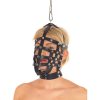 Genuine leather penis scrotum tube with strap, adjustable with press studs.