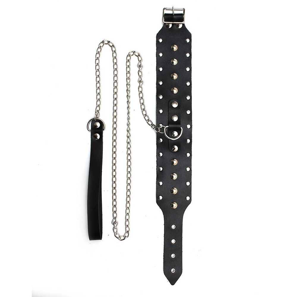 Genuine leather dog collar with chain. Adjustable with buckle.