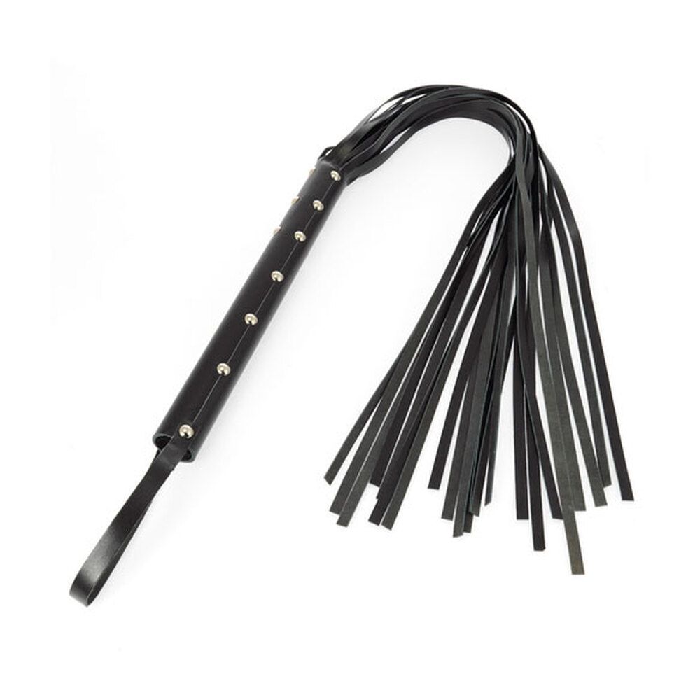 Genuine leather whip with 18 strings, Handle 12 x 1.1 inches, Strings 26 Inches long.