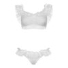 2 PC Lace ruffle off the shoulder point d’esprit crop top and matching thong panty. One Size UK 6 to 12