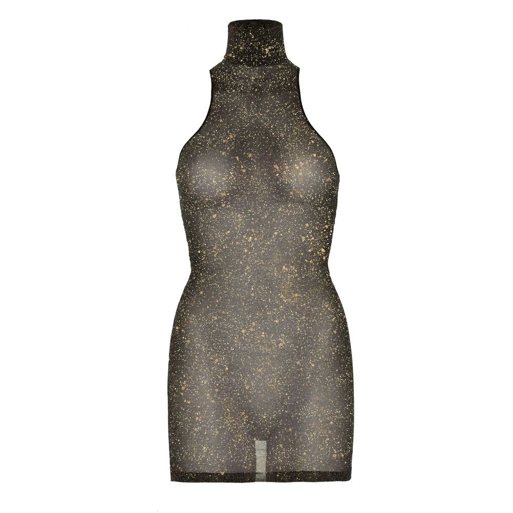 Lurex shimmer spandex high neck mini dress. One Size UK 6 to 12