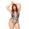 Seamless multi net bodysuit with T-strap halter and cheeky cut bottom. One Size UK 14 to 18.