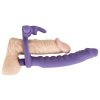 Strap on dildo for him on a cockring.The dildo has a mini vibrator which can be romoved.The cock ring has rabbit ears for clitoral teasing, it also has a removable bullet.