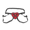 Show your love with the fully adjustable heart shaped Lux Fetish Red Heart Strap on Harness. This durable strap on can accommodate any dildo with a flared base, and includes 2 rubber holder rings.
