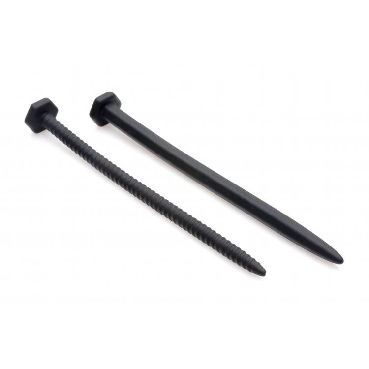 Two irresistible shapes for your penetrative pleasure! Both sounds are shaped like heavy-duty hardware, tempting you with a smooth, hexagonal nail and a spiral-textured screw. The flexibility and silkiness of the material ensure a comfortable insertion as it conforms to your inner curves. Fulfil your most hardcore fantasies with this dastardly duo! Made of premium silicone, these sounding rods are hypoallergenic and easy to clean with mild soap and warm water. Do not use with silicone lubricant.