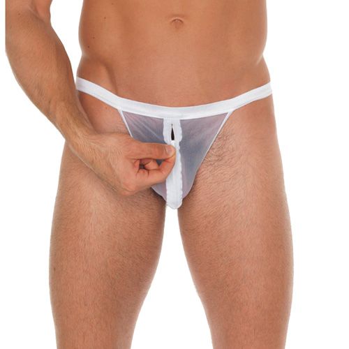 Mens White Mesh Pouch With G-String. One size.