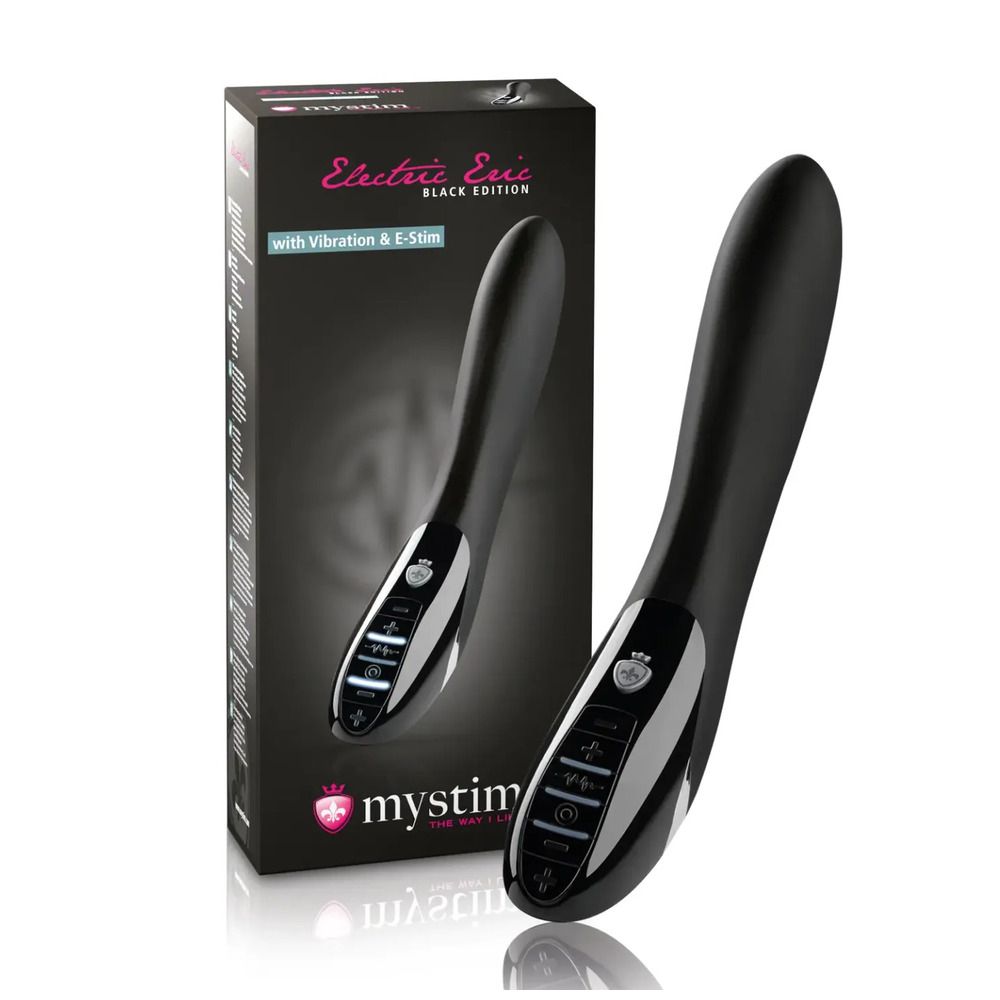 Your cry for love will be heard. Electric Eric is here and ready to stimulate you and pamper you with vibration and stimulation at the same time. Because double is just better. Without any electrical device or cable, the all-rounder vibrates, tickles and pulsates with pleasure inside you. The smooth 27 cm long and up to 3.8 cm wide silicone body of this e-stim vibrator makes you tremble wonderfully, you get as hot as lava. Electric Eric has two sources of vibration, one in the tip and one in the shaft. With 8 different programs and 5 different strengths, the two play together quite skilfully. United they do their best to find the most varied way to drive you to ecstasy.Each of the five stimulation current programs of this e-stim vibrator is designed to give you a new tingling emotional experience. Electric Eric’s conductive surfaces run along the sides and have 10 different levels of intensity to make the stimulation as even as possible.You know how we are, 8 vibration programs and 5 different stimulation current variants were not enough for us. So our Electric Eric also has a training program on board. It strengthens the muscles of your pelvic floor, which has been shown to improve the ability to orgasm. The various functions can be controlled very easily using the navigation keys in the handle. You can choose whether you want to use stimulation current and vibration combined or just one of them.Electric Eric is made of 100 percent medical grade platinum silicone. This makes it not just really hygienic, but also easy to clean with some damp tissue and mild suds. Its long-lasting lithium-ion battery can be charged using the included Mystim magnet charge USB cable. Even with current and vibration running simultaneously at the highest setting, a fully charged Electric Eric will operate for at least 3 hours before it loses potency. So, get ready for an endlessly beautiful pleasure.TECHNICAL DETAILSType e-stim vibratorLength 27 cmDiameter 3,5 – 3,8 cmMade of 100 percent medical grade platinum siliconeIntensity 0-90 mAFrequency range 5-70 HzPulse width 90-140 µsMystim magnet charger and USB-charger includedNo electrical device needed