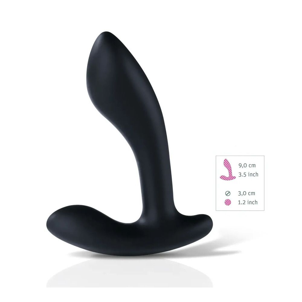 No matter what course he is on, Flexing Flavio always comes around. Especially when he is cruising around your prostate. Unbelievable how far this prostate stimulator, including its baffles, can be bent and wangled into simply all directions. The secret of this impressive flexibility is the Flex and Stay technology by Mystim. Just push it in the form you like it and it will stay like this until you give it a new hot twist. Try that with your schlong, or maybe not!Bent or not, when it comes to electric stimulation Flexing Flavio is always in the best form ever. It gets excitingly intensive when this innovative bi-polar electro-sex prostate stimulator plays out its striking feature. The streamlined form and the impressive tip will drive you crazy at full speed. And don’t forget, Winner, cums first. To activate the electric poles you need a device like the Mystim Tension Lover or Mystim Pure Vibes.Life is too short to beat around the bush, so let’s get started, shall we? Simply plug the right cords, not included, into the toy’s port. But before you insert Flexing Flavio and, optionally, switch on the electrical stimulation, you might want to treat him with something slippery, a water-based lubricant. Trust us, it’ll be the cherry on top of your prostate massage.Cleaning won’t bother you at all. Flexing Flavio is made of 100 per cent medical-grade platinum silicone, so all you need is water, some mild suds, and a regular disinfectant.The extremely hygienic material also has a very smooth and soft surface, which will nestle to your skin just nicely.TECHNICAL DETAILSType Prostate stimulator, optional with e-stimLength 9 cmDiameter 1,3 – 3,0 cmWeight 105 gPole 2 bi-polarcables are not includedColour Sexy blackMade of 100 per cent medical platinum siliconeElectrical device needed only for e-stim optionConnection via 2 mm socket female