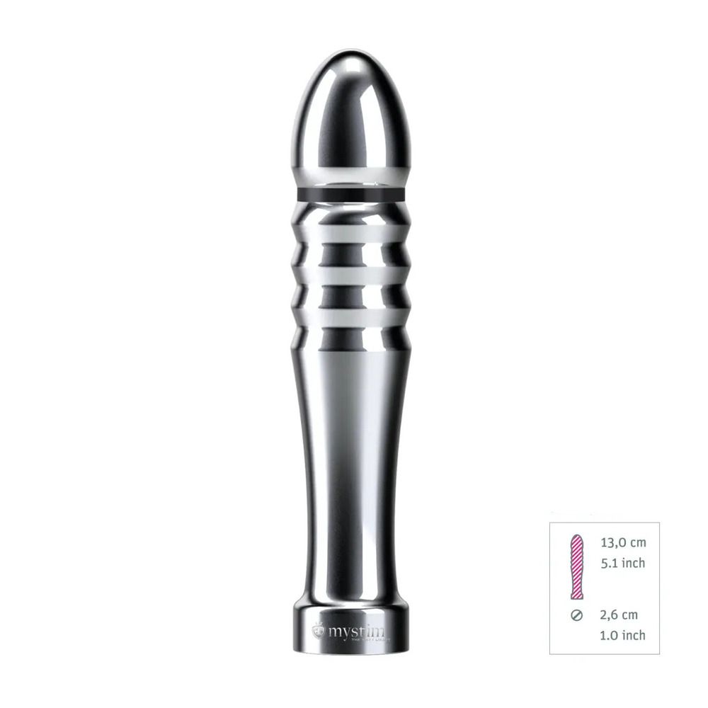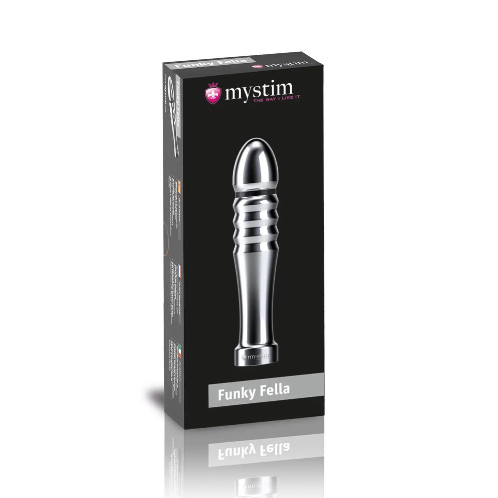 Fellas, here comes Mr Sex MachineGet up, get on up, get up, get on up, the totally awesome grooves of Funky Fella get you hooked up completely. This slim and gently tapering dildo is the No.1 when it comes to pleasure you or your partner vaginal or anal. You have to see for yourself how easily he does his little dance and can be inserted all thanks to the compact diameter and the straight design.The slightly curved, smooth aluminium can be inserted easily and deep. Even more so, if you use a water-based lubricant. Funky Fella will literally electrify you. Depending on your setting you will whether feel a soft tickle, a rhythmic pulse or a sensual thrust. No magic trick but good old physics. The separation of the plus and minus pole is located within a few centimetres from the tip. To activate the poles, you will need an electrical device like Mystim Tension Lover or Mystim Pure Vibes.Once Funky Felly gets in the mood he will get you heated up in no time and it is totally up to you for how long you want to be pleasured by him. Enjoy the prickly, lustful sensation for hours on hours or vary the stimulation in a way, that quickly drives you to unbelievable climaxes just as you like it. And when you put Funky Fella on the heating before you play or cool it down in the fridge it will make your sex life hotter than hell.Only handmade high-quality and hygienic medical aluminium carefully polished and rounded off with an elegant plastic handle. We’re sure Funky Fella will always be right at hand.Funky Fella is easily cleaned with just water and mild suds. In addition, you should regularly add a skin-friendly disinfection.And please be so patient to let it dry completely before your next enchantment, so it can work its thrilling groove on you for a long time.