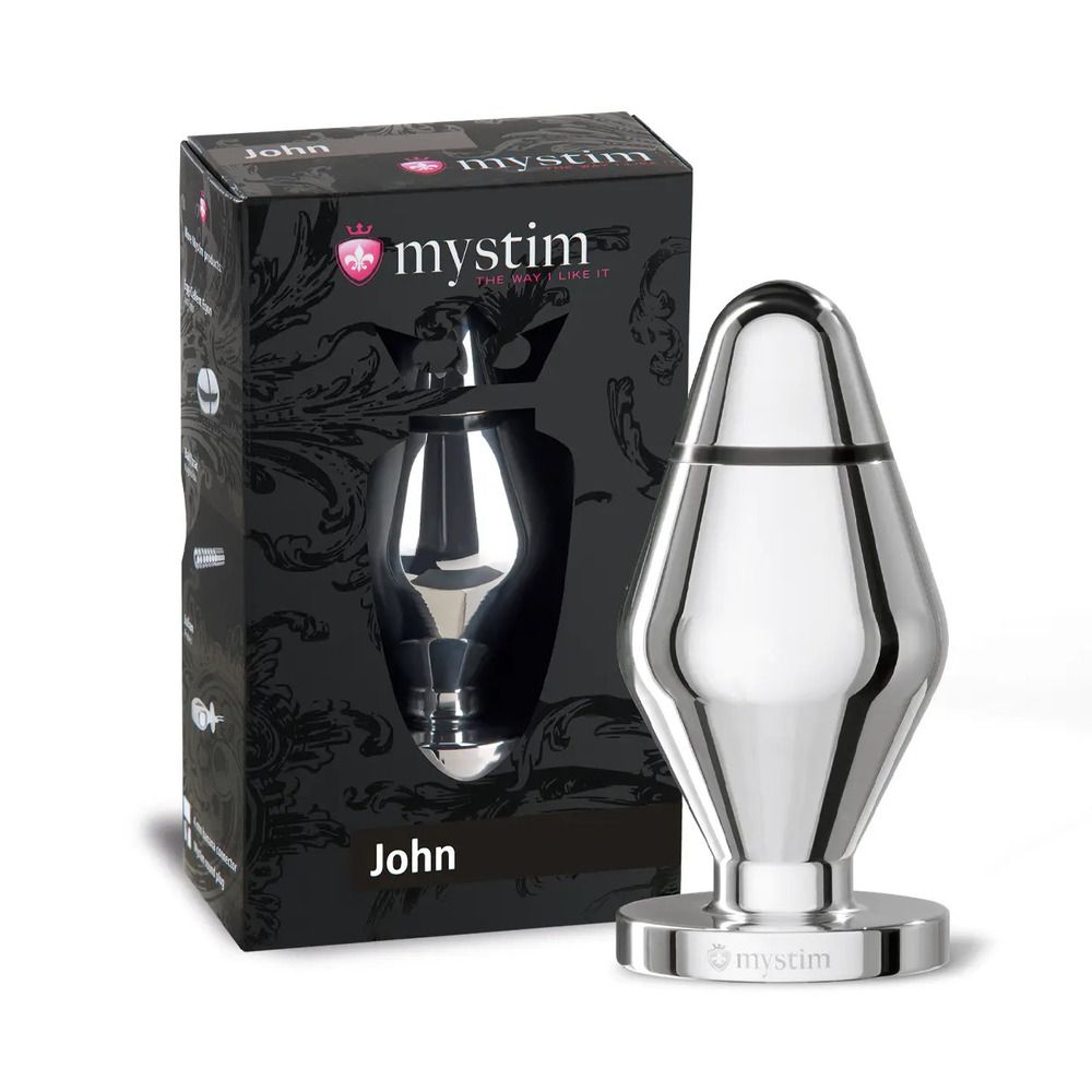 John is more than just a playboy and for that, he loves to vanish where the sun doesn’t shine. As his body of bright polished aluminium narrows towards his gently rounded tip, it makes it easy for you to insert him even if you are a virgin when it comes to anal play. There’s a first time for everything and life is full of chances to deepen first experiences.Straight into happiness, Only a few centimetres and the two poles of this dinky Mystim E-stim butt plug are isolated already. To activate the electrical poles, you need a device like Mystim Tension Lover, Mystim Pure Vibes or Cluster Buster. And then blimey Johnny the electrical stimulation can kick in. Already as Johnny stretches you the current starts to tickle, tingle and pulsate nicely on you. You can even heat the party up by simply warming John with warm water before you play or by cooling him down in the fridge.This tingly and lustful pleasure can entertain you for hours if that’s your game. You can vary the stimulation in a way that drives you to one thrilling climax after another. Or you can save yourself mere moments before cumming. As you wish or as you adjust your Johnny.John is made of hygienic aluminium used in medical engineering. Just use some water and mild suds to clean it and regularly put some skin-friendly disinfection to it. After it is completely dried off it is ready for the next large-scale operation.