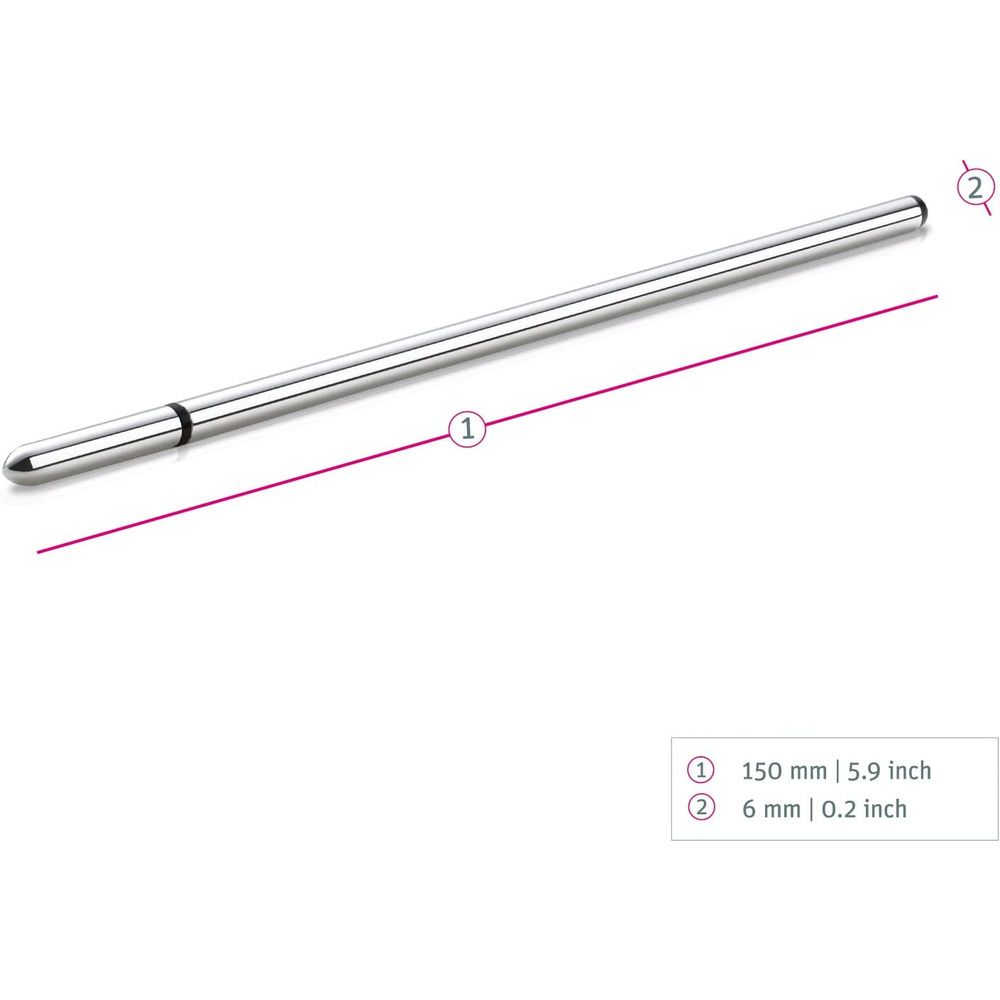 Well, this one’s going down the tubesWhen Slim Finn does his vanishing trick, you’ll be the first to notice. With its slim and light body, the urethral dilator takes the entire sensation range of electrostimulation to excitingly unusual places. Its gently rounded tips and seamless smooth transition between the poles not only gives it a stylish appearance but also make it easy to insert into the urethra with a little practice and lubricant. As soon as Slim Finn is in place, he combines the bittersweet stretch from the inside with the endless teasing of the impulses into a unique composition.Straight into happiness, only a few centimetres and the two poles of this compact Mystim urethral sounds are isolated already. To activate the electrical poles, you need a device like Mystim Tension Lover or Mystim Pure Vibes. And off you go with the electrical stimulation. Already as you get stretched the current starts to tickle, tingle and pulsate nicely on you. Your trip down the tubes can even be spiced up by simply warming Slim Finn on the heating before you play or by cooling him down in the fridge.Let yourself be spoiled by this tingly and lustful pleasure for hours on hours if that is what you want. You can also vary the stimulation in a way that drives you to one thrilling climax after another. Or you can save yourself mere moments before cumming. Just like you wish and just how you adjust the setting.Just use some water and mild suds to clean it and regularly put some skin-friendly disinfection to it. After it is completely dried off it is ready for the next large-scale operation.Slim Finn is made of hygienic medical aluminium and carefully polished by hand. Somebody that brilliant shouldn’t go into hiding at all but some benefactors simply love to work in secret. They love to work hard and with pleasure to create unforgettable moments. And they are hard to stop in their progress.