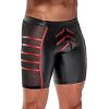 Close-fitting shorts from NEK in a black matte look with contrasting red stripes. Each side with a transparent fine mesh insert, flap pocket on the left leg. Pouch with underlaid zip. Soft, stretchy and with an elastic-covered waistband for maximum comfort.Tight shorts in an elegant matte lookContrasting red stripesFine mesh inserts at the sidesZip at the frontFlap pocket at the sides of the left legElastic covered waistbandSoft and stretchy for high comfortExciting material stimulating style!90% polyester, 10% spandex, mesh 90% polyamide, 10% spandex.