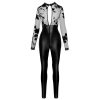 Emphasising jumpsuit from Noir in a tight cut with long sleeves and legs. Elegant, black powerwetlook with transparent, subtle velvet-flocked stretch tulle top. Soft and stretchy for a snug fit with maximum comfort. Large keyhole neckline at the front and back. Stand-up collar to close with buttons at the front. Full-length 2-way zip from the waist through the crotch to the bottom.Exclusive jumpsuit in a classy material mixPowerwetlook and delicate stretch tulleSubtle velvet flock printClose-fitting with long arms and legsKeyhole neckline front and back2-way zip to above the bottomStand-up collar with button closure at the frontSoft and stretchy for high comfortExclusive style in a luxurious mix of materials!76% polyester, 24% spandex, polymer coating tulle 86% polyester, 14% spandex.