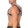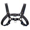 This handsome harness combines bonded leather and stainless-steel detail, to wrap around your chest and back, accentuating your curves and edges. The two O-rings, one on the front and the back, make it easy to attach various BDSM accessories and take your bondage play to the next level.Buckles on the sides of the torso and on each shoulder allow you to adjust this harness to the perfect fit. Wear it on bare skin and instantly capture admiring eyes as they showcase your strength. Wear it over your clothes and let people know what kind of fun you’re up for!