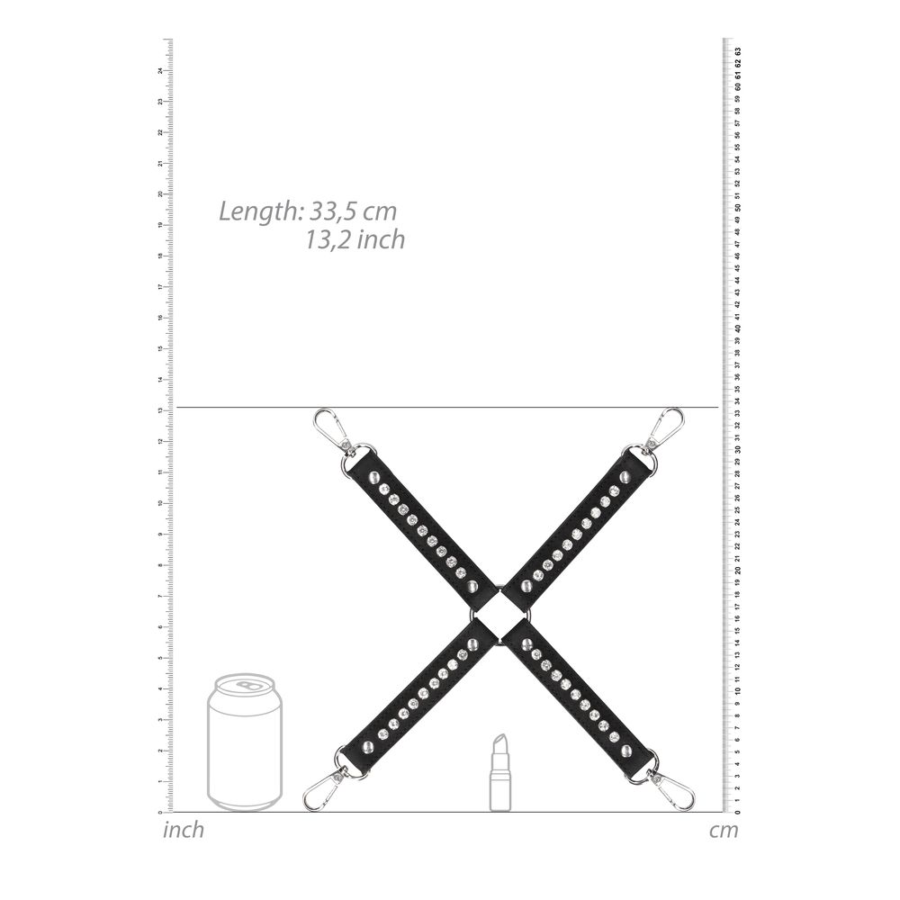 Get ready to please or receive in the intense Diamond BDSM line. Glamorously tough, the perfect combination of firm faux leather and glamourous diamond studs will turn you into the star attraction of the night.Tie me up and I surrender. This Hogtie will limit your ability to move, hands and feet tied behind your back. Use this Hogtie together with the ankle and wrist cuffs because together they form the ultimate set. The perfect addition to a very hot kind of trouble it is time to set your dark side free.