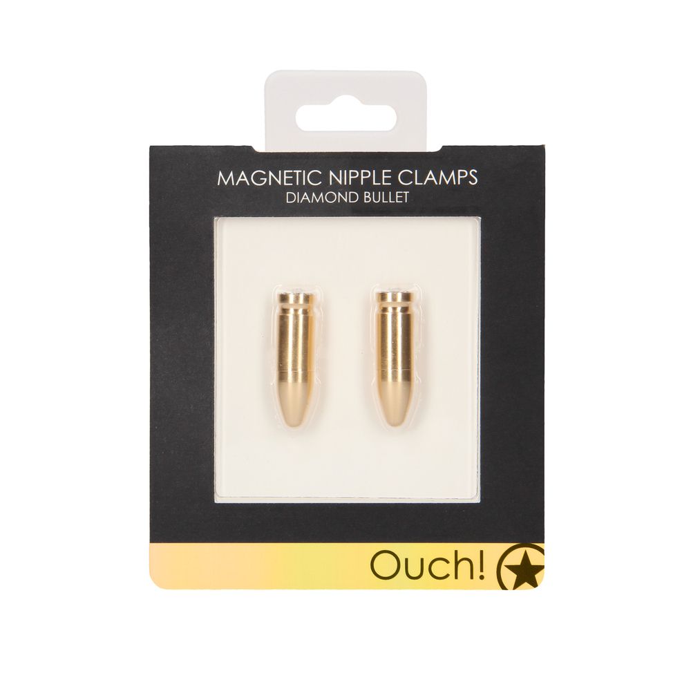 Ouch Magnetic Nipple Clamps Diamond Bullet Gold