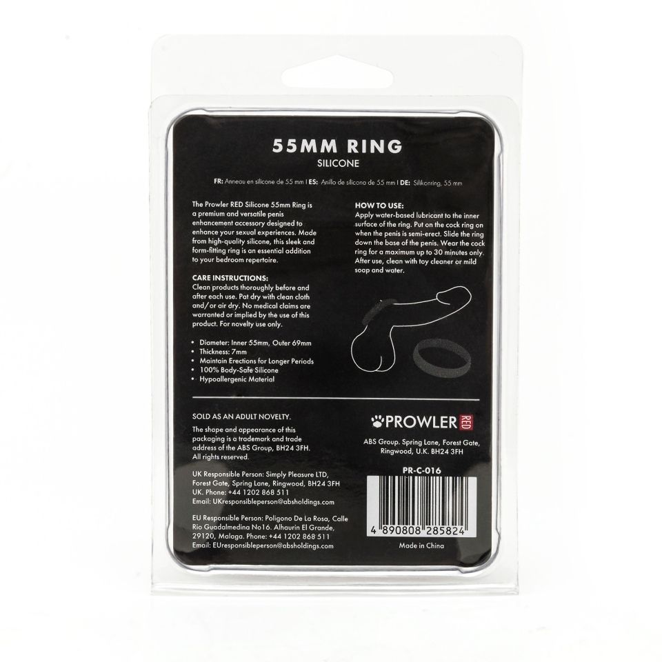 The Prowler RED Silicone 55mm Ring is a premium and versatile penis enhancement accessory designed to enhance your sexual experiences.Made from high-quality silicone, this sleek and form-fitting ring is an essential addition to your bedroom repertoire. Its 55mm diameter offers a snug fit for most users, providing just the right amount of constriction to enhance your performance and pleasure.Part of the Prowler RED collection, you know you can expect red-hot satisfaction with this sex enhancer. The silicone material is body-safe, hypoallergenic, and easy to clean. Whether you’re looking to prolong your erections, intensify your sensations, or experiment with different sensations, the Prowler RED Silicone 55mm Ring is up to the task. It’s discreet, simple to use and suitable for beginners and experienced users alike.Inner diameter 55mmOuter diameter 69mmThickness 7mmHeight 14mm