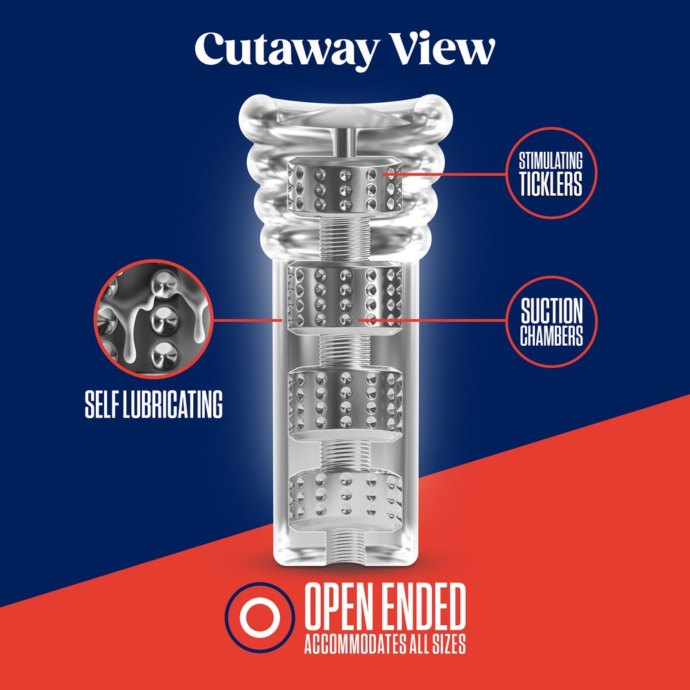 The RIZE! Luz is loaded with fun! This stroker is self-lubricating, just add a little water or saliva, and everything gets slippery. It also glows blue in the dark to add some excitement to your night! The Luz has soft ticklers for the ultimate feel and a ribbed inside for pressure point massage. Multiple chambers of suction create pleasurable stroking sensations. Super-soft and flexible, the Luz will fit any size shaft. It is free of phthalates, fragrances, paraffins, and latex.Self-lubricating.Add water or saliva, slippery when wet.Glows in the dark.Soft erotic feel and open-ended.Multi-chambered and textured.Snug for extra pleasure.Internal ticklers and chambers of suction.Squeezable.Contains no phthalates, paraffins, or latex.Length 6 inches, 15,2 cmWidth 2.5 inches, 6,3 cmOpen-ended to fit all sizes