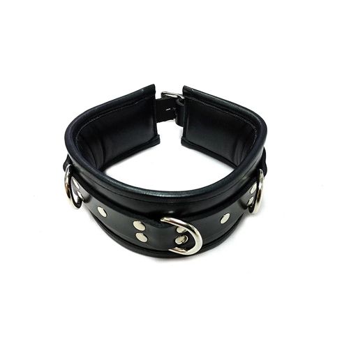 Leather padded collar made of premium leather. This collar is adjustable for the perfect fit. Has three D-Rings allowing for attachments. The collar is 2.75 inches wide.