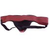 Sporty leather jocks with a coloured leather stripe and matching coloured striped band.