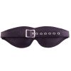 Large leather padded blindfold with buckle closure for adjustable sizing.
