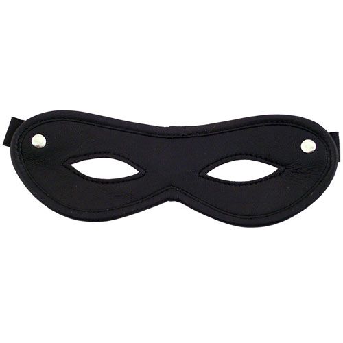 Leather eye cut mask with elasticated strap to fit all sizes.