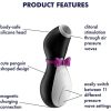 This cute design by the makers of the extremely popular, Satisfyer Pro, offers the same pressure wave technology featured throughout their range, in a cute, handy design. The Satisfyer Pro Penguin Next Generation fits comfortably in the palm of your hand with simple controls at the base, allowing you to easily change speeds. The curved head and precision tip creates never-experienced-before climaxes with 11 different programs. USB charging cable included. The new Next Generation design comes in a gorgeously sophisticated black and white to replicate the colours of penguins that inspired the design, along with an adorable pink bow to tie the look together!