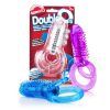 The DoubleO 8 vibrating erection ring features two specially positioned rings and a vertical vibrator angled for maximum stimulation where traditional vibrating rings can’t reach!Simply stretch one ring around the shaft and the other around the testicles for an extra-secure fit and super-powered pleasure where it counts!Vertical vibrating double ringExtended angled vibrator for full-motion contactDouble rings for a snug fit,1 for the shaft and 1 for the testiclesSuper-powered bullet motor for mutual satisfactionSoft pleasure ticklers for enhanced sensationsAvailable colours Clear, Pink and Blue, only one is supplied