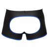 Trendy matte look pants with an open back.Showmaster holes for the penis and testicles.The pants feel very exciting.Stretchy and very comfortable.A provocative style at the front and back!Pants with an open back from Svenjoyment. They also have showmaster holes for the penis and testicles. Made out of trendy, black matte look material with contrasting, stitched cut-outs in a royal blue colour. There is also royal blue material around the legs. The tight-fitting but stretchy material is extremely comfortable. The provocative holes are not just an eye-catcher, but they also feel very exciting.94% polyester, 6% spandex, polyurethane coating.