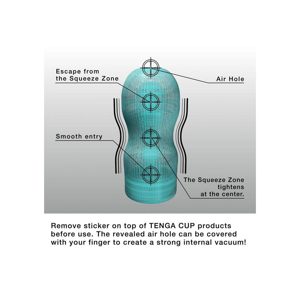 The Masturbator Original Vacuum Cup Extra Cool from Tenga is in a discreet design. This Premium version has an even more elaborate texture inside, even more, high-quality silicone and an even more flexible squeeze cup.