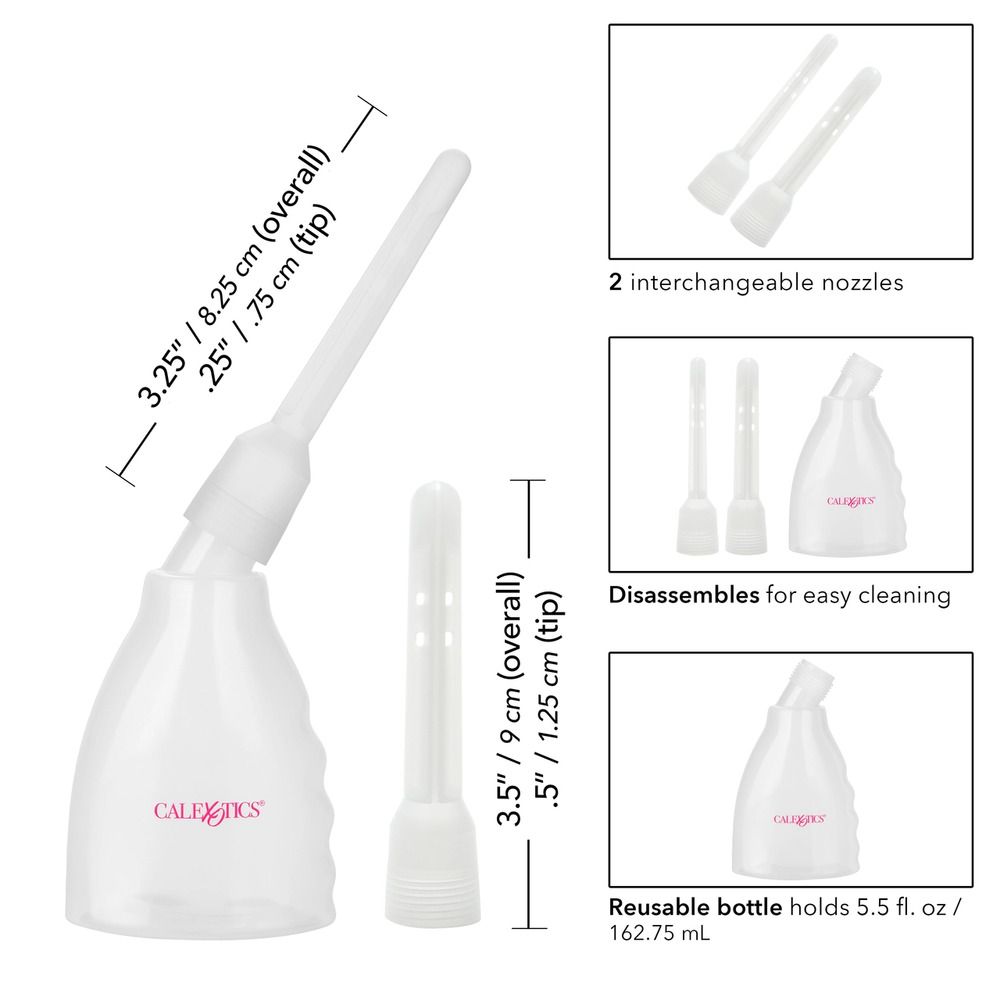 The CalExotics Ultimate Douche is exactly as described in the ultimate anal douche apparatus. With the douche in hand, you can be confident that you are maintaining the highest standard of anal hygiene any concerns about cleanliness can be left at the door with our premium anal douche.This fully re-usable anal douche system is easy to dismantle, meaning that you can clean it quickly and easily, and the sturdy construction means that your unit is built to last. It features a completely transparent bottle, allowing the user to gauge exactly how much water is in the douche. Not only is it hygienic, but it is also incredibly safe to use, so you have full peace of mind when using our product.This superior cleaning system comes complete with two attachments, allowing you a number of options when it comes to douching. Opt for the more discreet, easy to use, smaller attachment when time is of the essence, or use the larger attachment when using your Ultimate Douche as part of your water play experience.